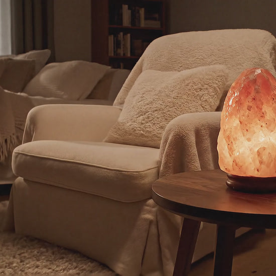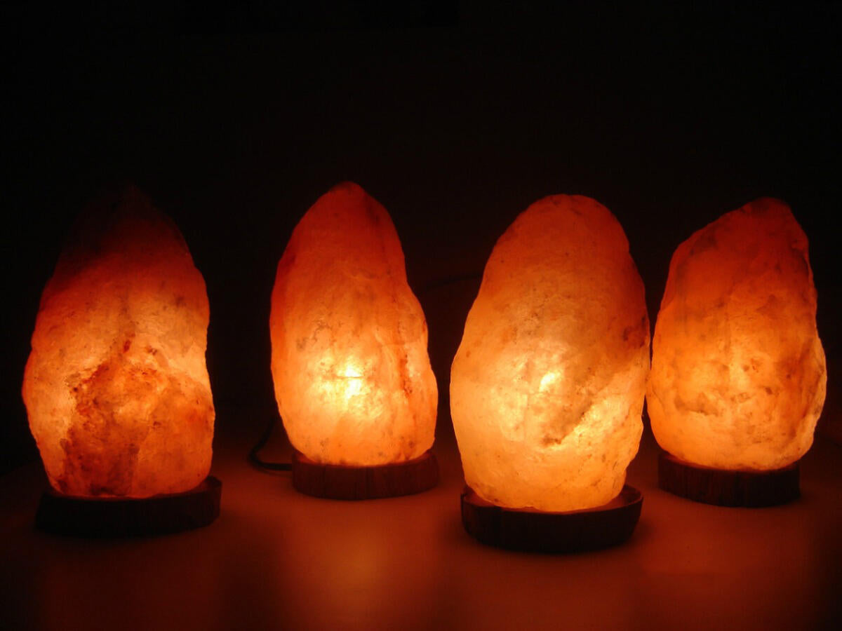 Lámpara de Sal del Himalaya con Base de Madera 100% Natural